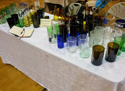 The same night of our craft show, we attended the Vetro GlassBlowing Studio's Glass on the Tracks annual art auction in Grapevine, TX. Each year, they select certain pieces of glass art to be put under a massive, wooden, glass-obliterating guillotine. The studio's owner then calls out names of attendees and asks them questions about the studio, their process and some of their more famous pieces. If the person can answer the question correctly, they can take home the piece for free! If they are wrong, the piece goes up for a 30 second auction. If the reserve isn't met, they smash the piece! It's heart-wrenching, for sure. Matt was called up and having been on the Vetro Glass website a few weeks prior, answered his question correctly. We are now the proud owners of a very beautiful glass rondelle! He has since wanted to be called "The Winner" at all family gatherings. **hanging head in embarrassment **